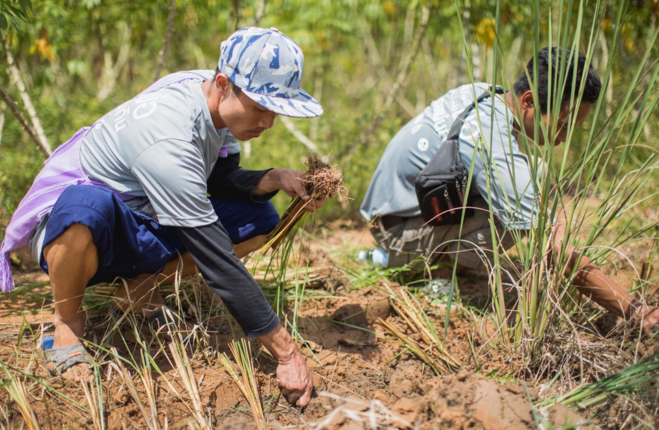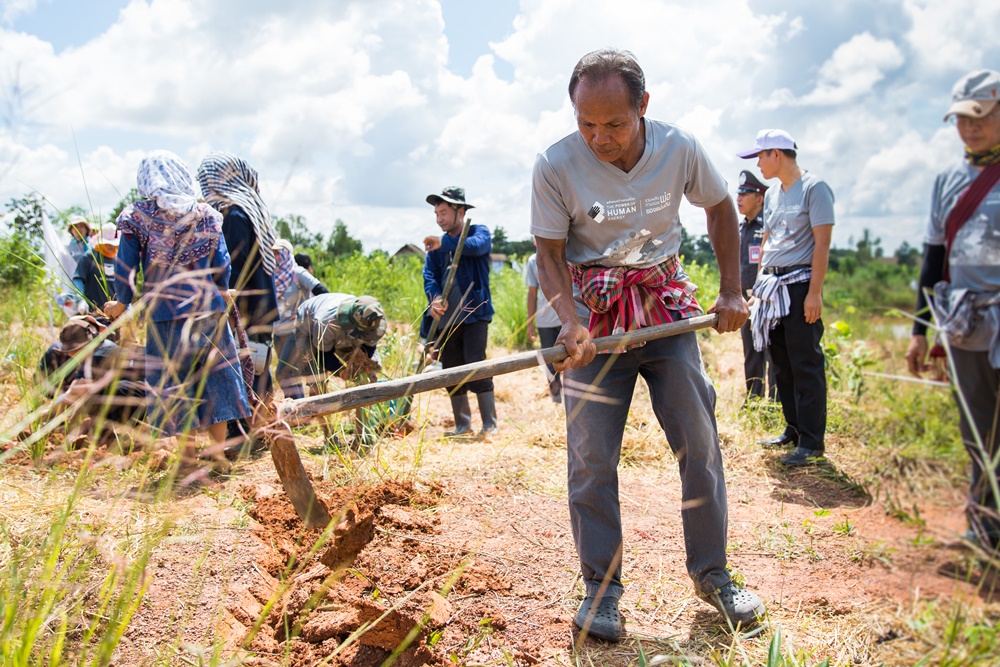 พื้นที่ของลุงแสวง แม้จะเป็นพื้นที่ที่มีฝนมาก มีน้ำมาก แต่ไม่เคยเก็บน้ำได้อยู่เลย ปลูกอะไรก็ไม่ได้ เพราะที่ของลุงเป็นหินดินดานทั้งหมด เมื่อฝนตกน้ำก็มามากแต่ก็ไหลไปเร็วมาก ได้แต่นั่งดูน้ำไหลผ่านไปเฉย ๆ ไม่รู้จะทำอย่างไร แต่เมื่อได้มาเรียนรู้ศาสตร์พระราชา ทำให้เกิดแรงฮึดสู้ขึ้นมา ลุงแสวงร้อนวิชาขนาดลุกขึ้นมาขุดดินดานด้วย 2 มือ ตั้งแต่ยังไม่รุ่งสาง
