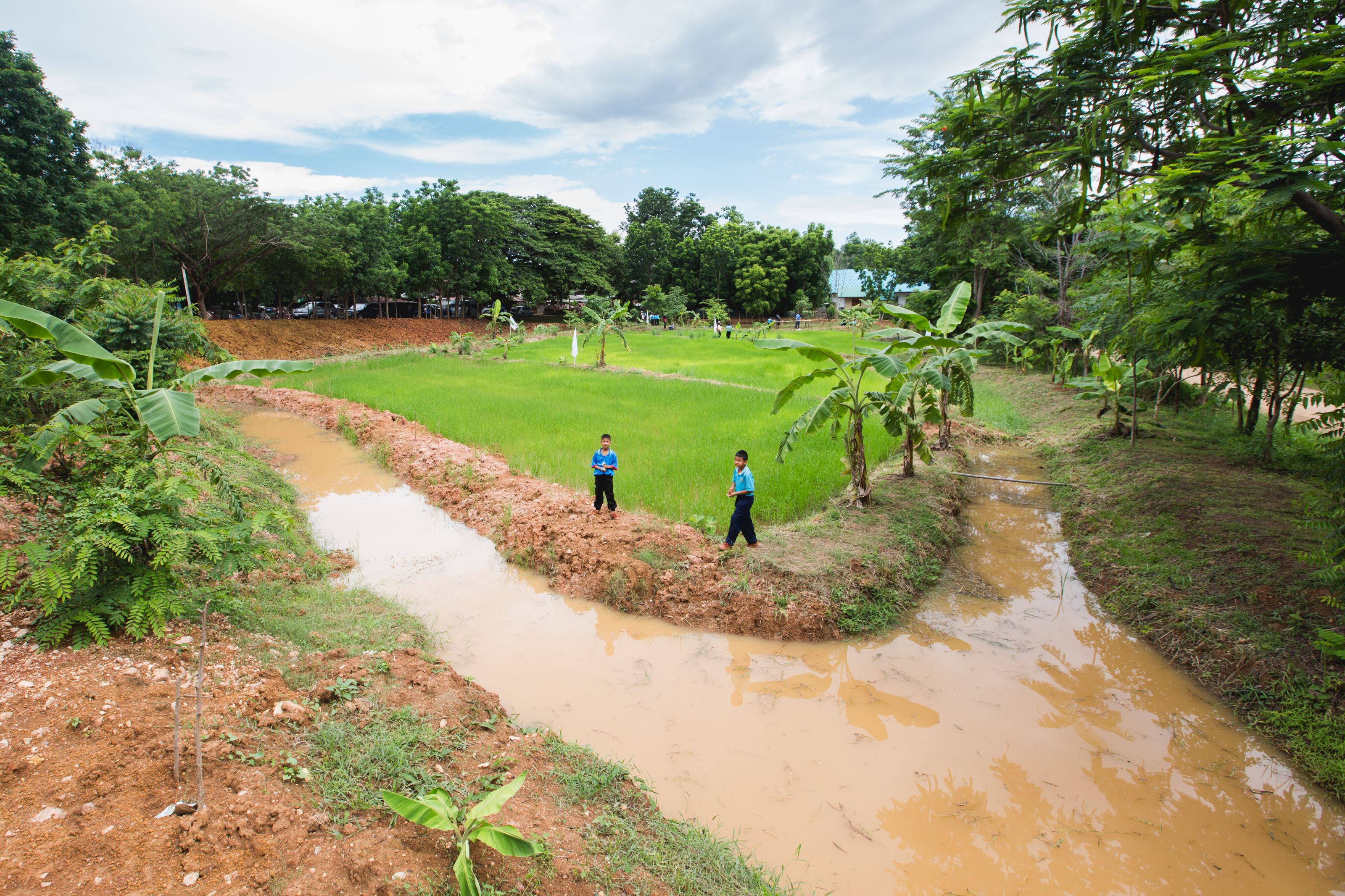 พื้นที่ว่างเปล่าประมาณ 5 ไร่ ที่ไม่ได้ใช้ประโยชน์ ได้มีการริเริ่มทำพื้นที่ให้เป็นต้นแบบการจัดการน้ำแบบ โคก หนอง นา โมเดล ให้นักเรียนได้เรียนรู้การทำเกษตรแบบเศรษฐกิจพอเพียง จากพลังของครู นักเรียน และชาวบ้านในชุมชน โดยการนำของโครงการฯ ได้ออกแบบพื้นที่ ขุดหนอง คลองไส้ไก่ ปลูกไม้ผลยืนต้น ผักต่าง ๆ และเลี้ยงปลา แปรเปลี่ยนเป็นอาหารกลางวันเลี้ยงเด็กในโรงเรียน เด็ก ๆ ได้นำพืชผักอินทรีย์กลับบ้านไปให้ครอบครัว และสร้างรายได้เพื่อเป็นทุนต่อไป
