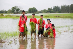 สร้างระบบนิเวศและแหล่งอาหาร ด้วยการดำนา ปั้นหัวคันนาทองคำ ทำกระชังเลี้ยงกบ ปล่อยปลา ในนาข้าว และทำแซนวิชปลา
