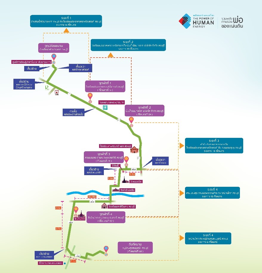 - ขบวนจักรยานแวะจุดพักที่ 2 ปั๊มน้ำมันบางจาก ป.ฟ้าใสเซอร์วิส ต.หน้าพระลาน อ.เฉลิมพระเกียรติ จ.สระบุรี (กิโลเมตรที่ 24)