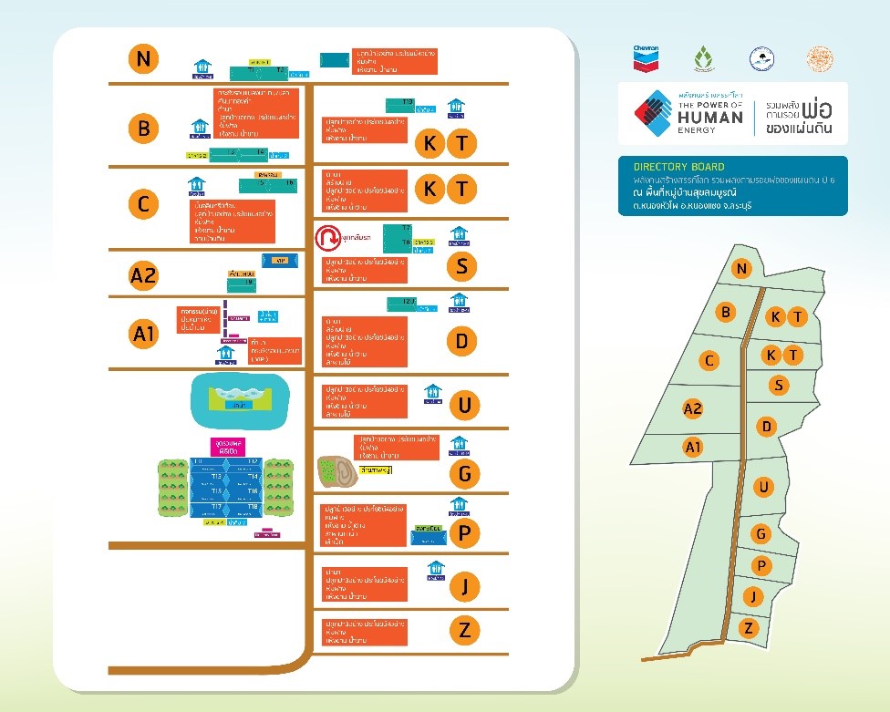 - ปรับปรุงบำรุงดินใน ฐานฅนรักแม่ธรณี ทำปุ๋ยแห้ง แบบไม่พลิกกลับกอง และปุ๋ยน้ำนมฮอร์โมนนม ซึ่งเป็นวัตถุดิบที่มีมากในพื้นที่