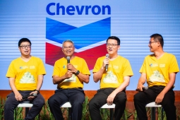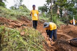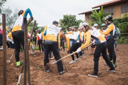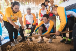พาชมพื้นที่ของนายประวีณ ศิราไพบูลย์พร (ติ่ง) และนางสาวกรองกาญน์ ศิราไพบูลย์พร (ต๋อย) 2 พี่น้องชาวปกาเกอะญอ และนางปนัดดา ปิ่นเงิน (แดง) ซึ่งเป็นพื้นที่ที่บริษัท เชฟรอนประเทศไทยสำรวจและผลิต จำกัด ร่วมกับศูนย์บูรณาการเทคโนโลยีเพื่อการแก้ไขปัญหาประเทศ สถาบันเทคโนโลยีพระจอมเกล้าเจ้าคุณทหารลาดกระบัง (Integrated Technology Operations KMITL (ITOKmitl) และภาคีเครือข่าย ร่วมกันจัดทำโครงการวิจัย “การออกแบบเชิงภูมิสังคมไทย การติดตามและประเมินผลเพื่อบริหารจัดการน้ำชุมชนอย่างมีส่วนร่วม” เพื่อจัดเก็บข้อมูลที่ได้มีการออกแบบและปรับปรุงพัฒนาพื้นที่ตามหลักปรัชญาของเศรษฐกิจพอเพียงและเกษตรทฤษฎีใหม่ไปแล้ว ให้เป็นระบบและได้มาตรฐานทางวิชาการ โดยนำผลสรุปจากโครงการวิจัยฯ มาประมวลผลในมิติต่าง ๆ ทั้งมิติทางเศรษฐกิจ มิติทางสังคม และมิติทางสภาพแวดล้อม