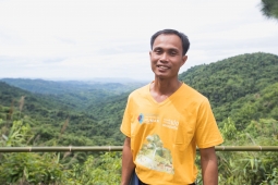 มีพื้นที่ 50 ไร่ ย้ายจาก อ.วังสะพุง มาตั้งรกรากที่ อ.ภูหลวง 22 ปีแล้ว เมื่อก่อนเคยทำข้าวโพด และลูกเดือย ที่เปลี่ยนเพราะมีหนี้ อยากปลดหนี้ อยากหาแนวทางการทำไร่ทำสวนนอกเหนือจากการทำพืชเชิงเดี่ยว ปี 43-44 ไปศึกษาดูงานที่มูลนิธิเลยเพื่อการพัฒนาชุมชนเพื่อการอนุรักษ์ป่าภูหลวง แล้วกลับมาตั้งกลุ่มออมทรัพย์เกษตรยั่งยืน มีสมาชิก 24 คน ค่อย ๆ เปลี่ยนมาปลูกพืชผสมผสานได้แก่ ลิ้นจี่ ลำไย และผักหวาน