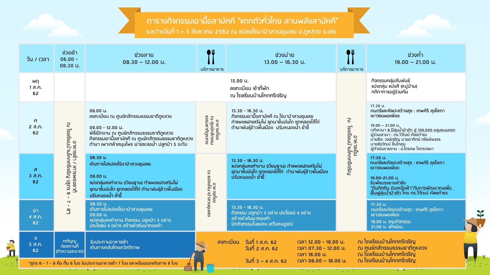 วันที่ 2-4 สิงหาคม พ.ศ. 2562 กิจกรรมเอามื้อสามัคคีใน 2 พื้นที่ และกิจกรรมทัศนศึกษา 1 พื้นที่