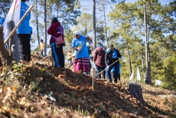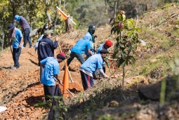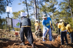 โครงการ "พลังคนสร้างสรรค์โลก รวมพลังตามรอยพ่อของแผ่นดิน" ปีที่ 8 จัดกิจกรรมเอามื้อสามัคคี ณ แปลงนายนพรัตน์ เด่นสอยดาว ชาวปกาเกอะญอแห่ง บ.แม่แดดน้อย ต.แจ่มหลวง อ.กัลยาณิวัฒนา จ.เชียงใหม่ พื้นที่ป่าสนที่สำคัญของประเทศ เพื่อฟื้นฟูและปกป้องพื้นที่ป่าต้นน้ำแจ่ม ซึ่งเป็นส่วนหนึ่งของลุ่มน้ำปิง ด้วยการใช้ประโยชน์ในพื้นที่ป่าอย่างยั่งยืน ลดการรุกป่า แก้ปัญหาฝุ่นควันและไฟป่า อีกทั้งสร้างต้นแบบให้เกิดขึ้นในพื้นที่ เพื่อสร้างแรงบันดาลใจให้เกิดการลงมือปฏิบัติเพื่อการพึ่งตนเอง โดยมีผู้ร่วมกิจกรรมราว 100 คน