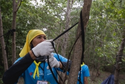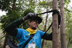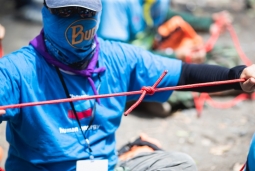 ยึดกับเชือกหลักที่เตรียมไว้ เพื่อข้ามไปยังผาหนุมาน