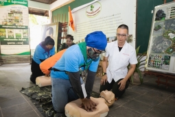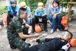 08:20-10:30 น. จุด 2: วัดใหม่เอราวัณ วิชาปฐมพยาบาล ผู้สอน: ชุดเสนารักษ์ ทหารรบพิเศษ