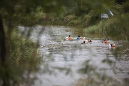 จุดข้ามน้ำที่ 1 ข้างโคกตาก – โคกสุรินทร์ ข้ามน้ำด้วยอุปกรณ์ที่ประกอบขึ้น