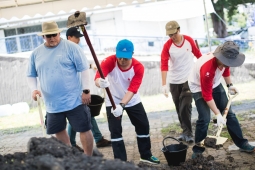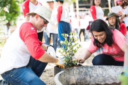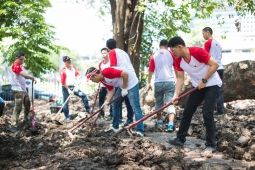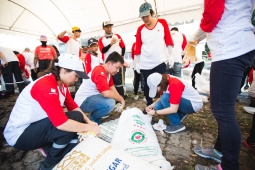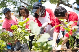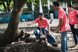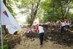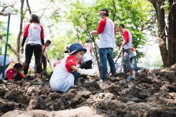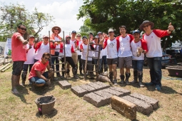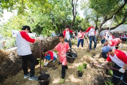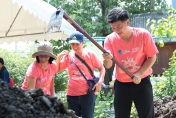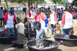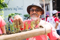 - ผู้ร่วมเอามื้อและภาคีเครือข่าย รวมพลแบ่งงาน แล้วกระจายกันทำงานสร้างศูนย์เรียนรู้ศาสตร์พระราชากลางเมืองหลวง ตามจุดต่างๆ ในพื้นที่ฐานธรรมธุรกิจ จำนวน 8 ฐาน
