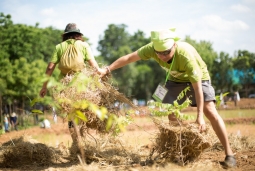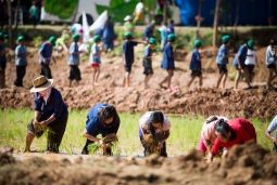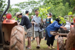 - เรียนรู้การปลูกพืชเกื้อกูลกับพนมเทียน ทองสิทธิ์ (อ๋า) เกษตรกรมือใหม่ อดีตนักธรณีวิทยา และวิชัย ใต้ระหัน ปราชญ์ชาวบ้าน ทำกิจกรรมร่วมกับเด็กๆ จากโรงเรียนขนาดเล็ก 6 แห่ง ที่นำศาสตร์ของพ่อมาทำให้พอกิน และบรรยายเรื่องการฟื้นฟูดิน