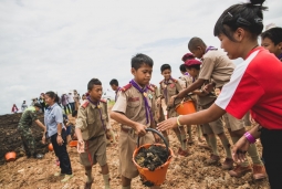 - ชมการจัดการโรงเรียนขนาดเล็กอย่างยั่งยืนด้วยเศรษฐกิจพอเพียง นักเรียนมอบเมล็ดไม้ให้กับสมาคมการบินเพชรบูรณ์ เพื่อเตรียมขึ้นโปรยปลูกป่าต้นน้ำในวันปิด และดาราร่วมเรียนรู้เรื่องเมล็ดไม้