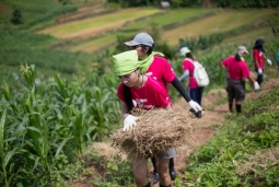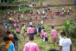 - ขบวนรถส้มกว่า 100 คัน พร้อมชาวบ้านหมู่บ้านต่าง ๆ รวมพลังกันขน “ต้นกล้า” มาปลูกในพื้นที่ “ฮีโร่คนใหม่” คือ อินตา วังคีรี และ สมชาย กันยาประสิทธิ์ เปลี่ยนเขาหัวโล้นเป็นเขาหัวจุก ด้วยหลักการยกน้ำจากร่องน้ำขึ้นไว้บนบ่อที่สูง เพิ่มความชื้น กระจายให้ทั่วพื้นที่ขนาด 5-9 ไร่ ด้วยการขุดลำเหมือง ปลูกแฝก ปลูกป่า 3 อย่าง ประโยชน์ 4 อย่าง ทำนาขั้นบันได ก่อหัวคันนาสูงและกว้าง เป้าหมายคือ ทำน้อยได้มาก ทำ 5 ไร่ได้มากกว่าถางภูเขาทั้งลูก