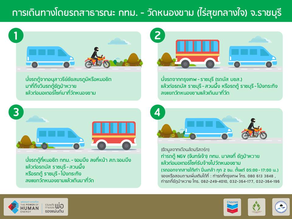 - ที่ว่าการอำเภอจอมบึง จ.ราชบุรี - มหาวิทยาลัยเทคโนโลยีพระจอมเกล้าธนบุรี วิทยาเขตราชบุรี (รวมระยะทาง 72 กิโลเมตร)