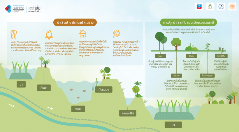 คือ ประโยชน์อย่างที่ 4 ที่เกิดจากการปลูกป่า 3 อย่าง จะช่วยฟื้นฟูระบบนิเวศดินและน้ำให้กลับมาอุดมสมบูรณ์ ร่มรื่น และฉ่ำเย็นขึ้นมา