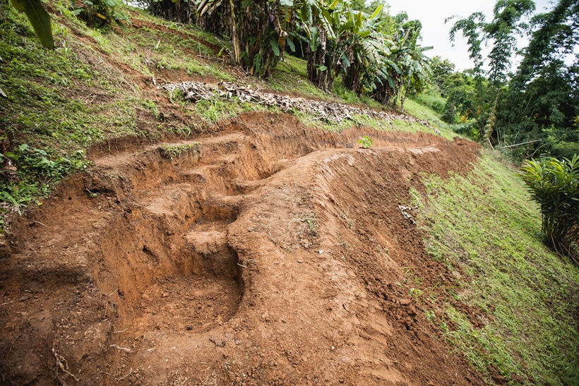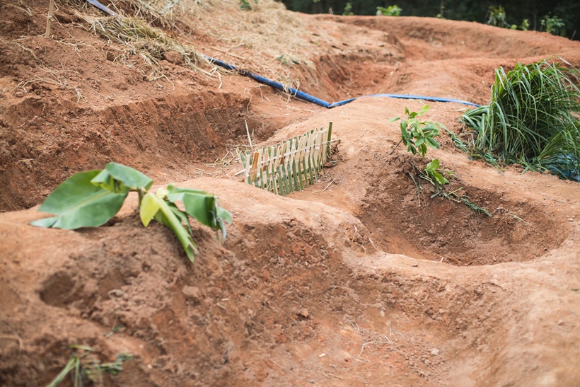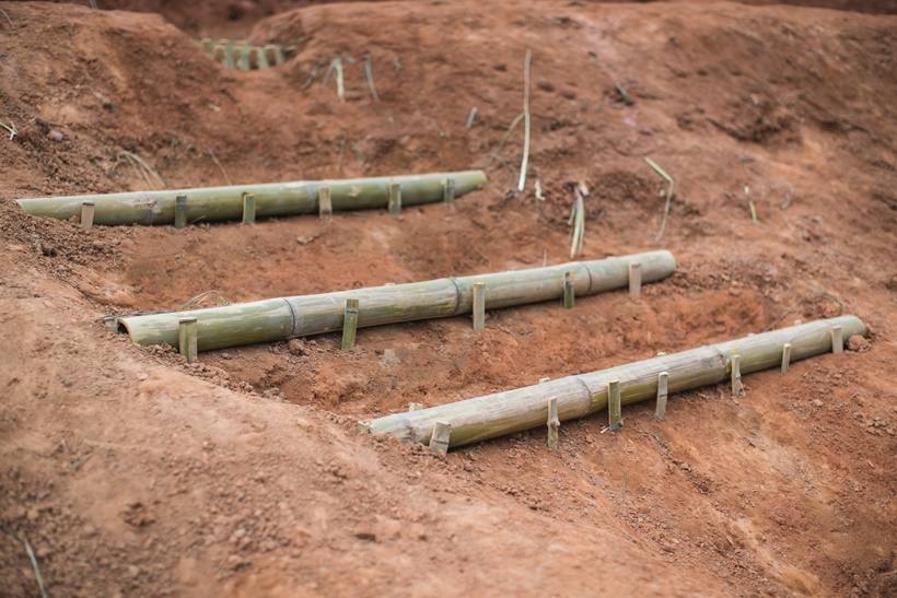 นอกจากนี้ให้ขุดหลุมเล็ก ๆ เพื่อให้น้ำที่ไหลมาตกในหลุม เป็นการชะลอน้ำที่ไหลผ่านไม่ให้ไหลแรงเกินไป รวมถึงการทำฝายเล็ก ๆ เป็นระยะ ๆ เพื่อชะลอน้ำ ทำให้น้ำซึมลงใต้ดินได้มากที่สุด และยังเป็นการล็อกตะกอนดินที่เกิดจากการทับถมกันของใบไม้และอินทรียวัตถุต่าง ๆ ซึ่งอุดมด้วยธาตุอาหารที่จำเป็นแก่พืช