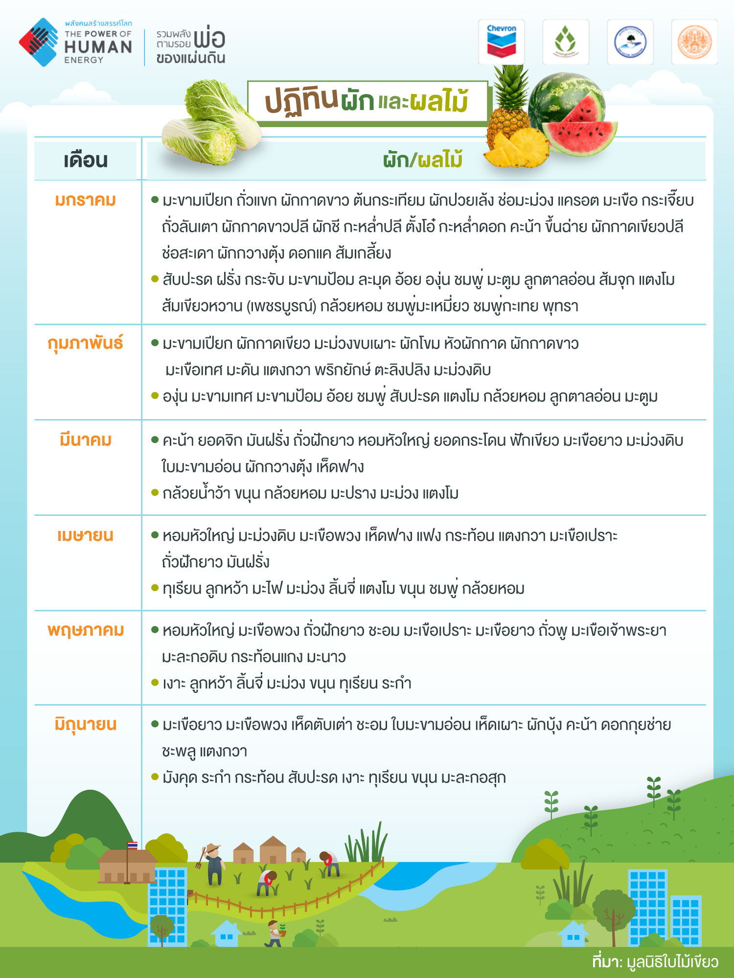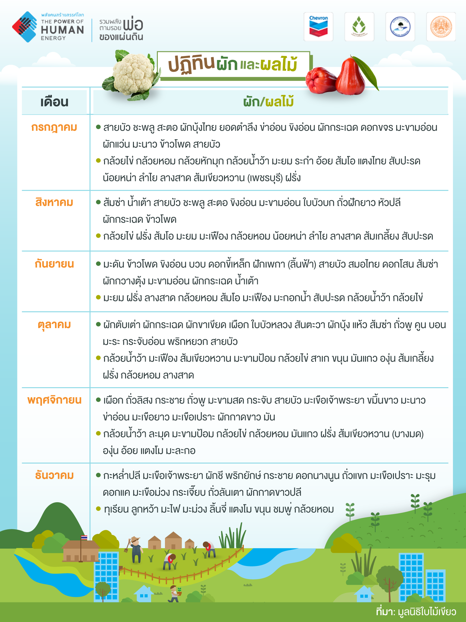 ซึ่งเราสามารถเลือกบริโภคผักและผลไม้ตามฤดูกาลได้จากตารางนี้