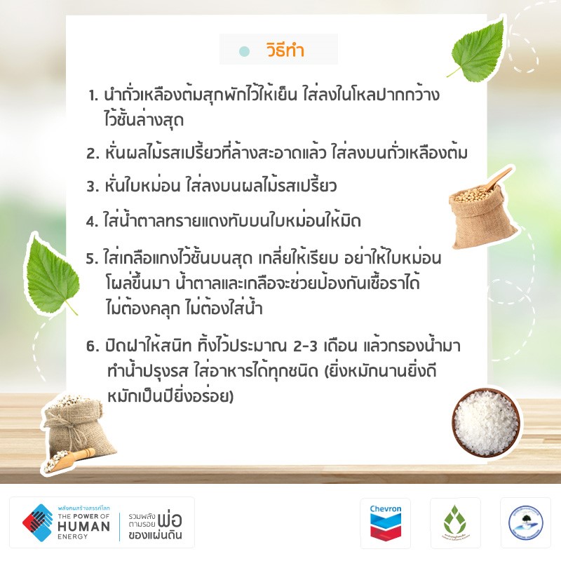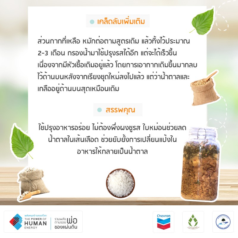 ลองเริ่มจากการทำ “ซีอิ๊วใบหม่อน” ไว้ใส่ในอาหาร เพื่อเพิ่มรสอร่อยแบบธรรมชาติ ดังสูตรนี้