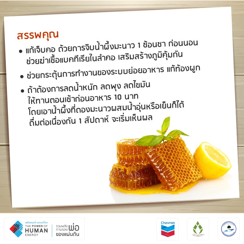 อากาศเมืองไทยเปลี่ยนแปลงบ่อย เดี๋ยวร้อน เดี๋ยวฝน ทำให้ป่วยไข้ได้ง่าย เมื่อเกิดอาการเจ็บคอ หากได้จิบมะนาวดองน้ำผึ้ง ก็จะช่วยทำให้ชุ่มคอ บรรเทาอาการเจ็บคอได้ดีทีเดียว นอกจากนี้ มะนาวดองน้ำผึ้ง ยังมีสรรพคุณช่วยระบบย่อยอาหารด้วย