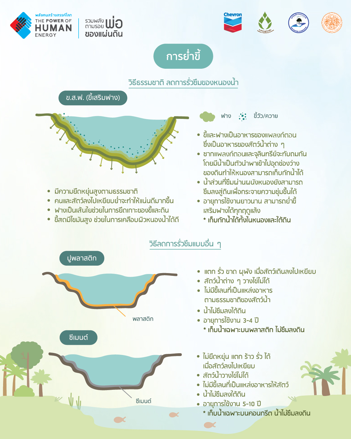 ด้วยภูมิปัญญาของบรรพชน การย่ำขี้ยาบ่อด้วยมูลสัตว์ สามารถนำมาใช้เพื่อลดการรั่วซึมของหนองน้ำได้อย่างดี โดยไม่ต้องใช้ต้นทุนสูงและยังเป็นมิตรกับสิ่งแวดล้อม เหนืออื่นใดยังได้ความสนุกสานและความสามัคคียามที่ได้มาทำงานร่วมกัน
