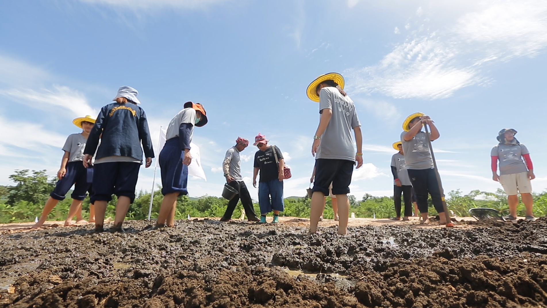 2. รดน้ำให้ชุ่มจนเป็นดินเลน