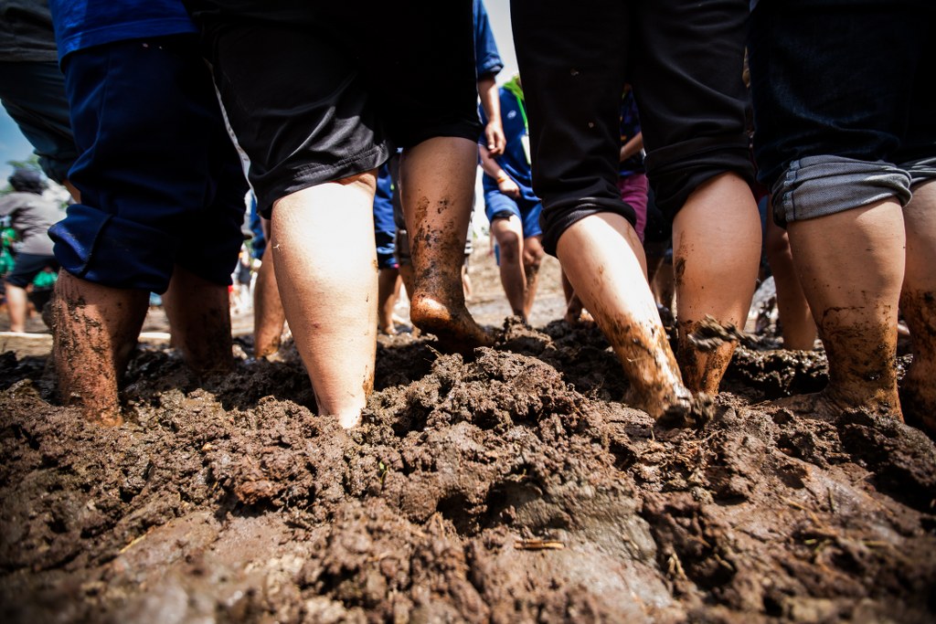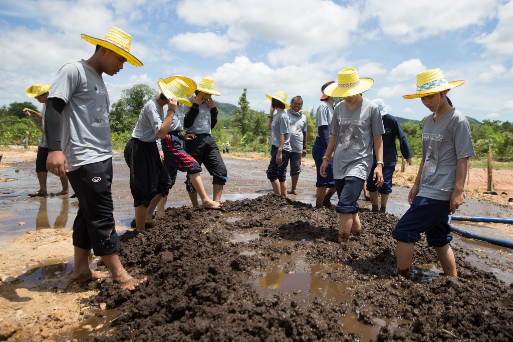1. เหยียบย่ำให้มูลสัตว์ ดิน และส่วนผสมอื่น ๆ ให้เข้ากันเป็นเนื้อเดียวกัน