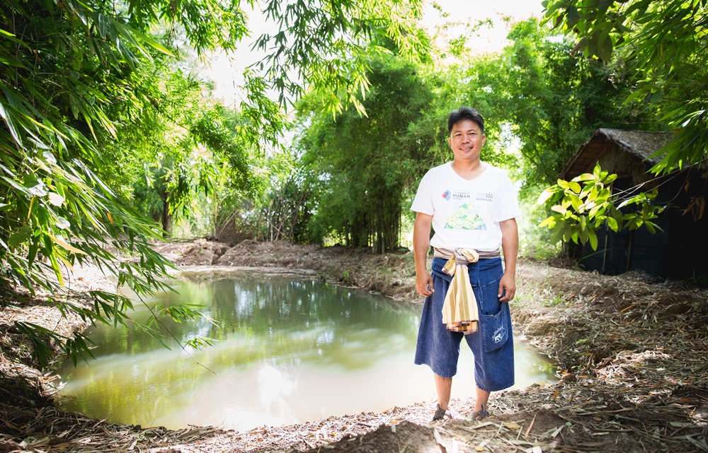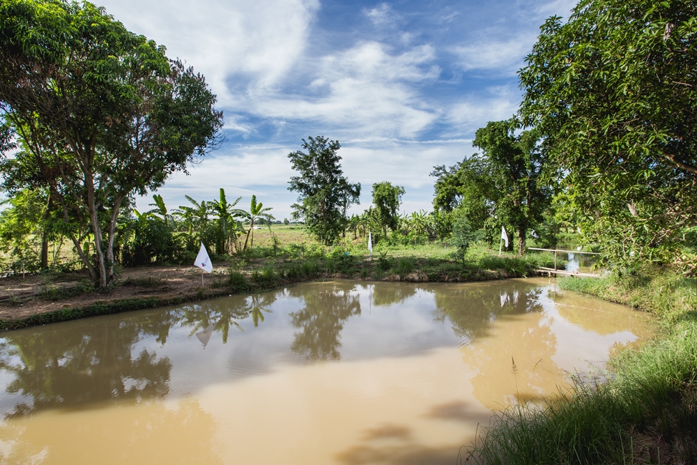 แบ่งผืนดินในบ้านขุด “หนอง” ให้เป็นแหล่งเก็บน้ำและที่อาศัยของปลา มีผักบุ้งผักกระเฉดเป็นแหล่งอาหารของคน
