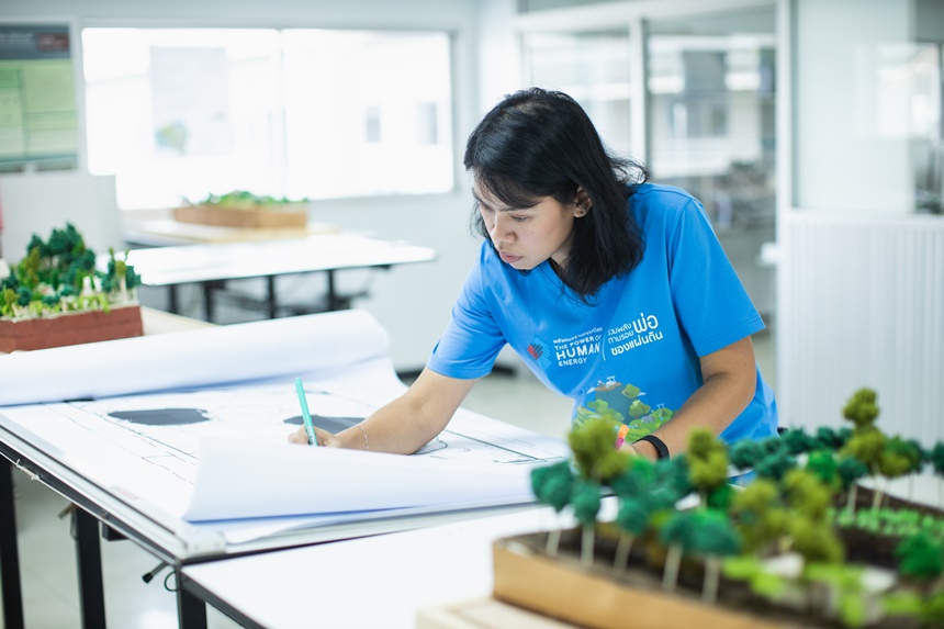 อ.สอง จบการศึกษาระดับปริญญาตรี ด้านภูมิทัศน์ และปริญญาโท ด้านสถาปัตยกรรมผังเมือง จากสถาบันเทคโนโลยีพระจอมเกล้าเจ้าคุณทหารลาดกระบัง และทำงานเป็นอาจารย์ที่คณะเทคโนโลยีการเกษตร ที่สถาบันฯ ในปี 2559 ได้มีโอกาสเข้าประชุมกับผศ.พิเชฐ โสวิทยสกุล (อ.โก้) คณบดีคณะสถาปัตยกรรมศาสตร์ในขณะนั้น โดยการชักชวนของหัวหน้าภาควิชา และคณบดีคณะเทคโนโลยีการเกษตร ซึ่ง อ.โก้ ได้นำเสนองานโครงการ “พลังคนสร้างสรรค์โลก รวมพลังตามรอยพ่อของแผ่นดิน” ปี 4 ก็รู้สึกจับใจ เพราะสอดคล้องกับหลักที่เธอยึดถือเสมอมา คือ ปฏิบัติบูชา ตามแนวทางปรัชญาเศรษฐกิจพอเพียง ของพระเจ้าอยู่หัวรัชกาลที่ 9