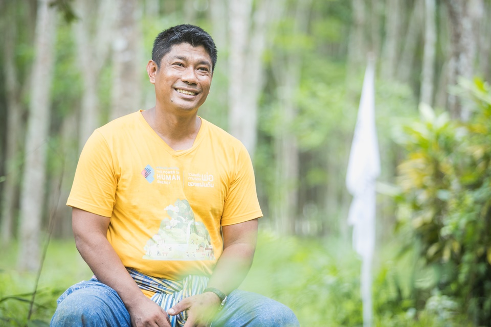 ลุงดาบ อดีตตำรวจตระเวนชายแดน เมื่อรับราชการได้ 37 ปีเศษ ในปี พ.ศ. 2547 เขาลาออกเพราะได้ส่งลูกทั้ง 3 คนจนจบการศึกษาระดับปริญญาโทและปริญญาเอกสมตามความมุ่งหวัง และตั้งใจนำเงินที่ได้รับจากการเกษียณก่อนกำหนดไปซื้อสวนปาล์มน้ำมัน 50 ไร่ สวนยางพารา 20 ไร่ แต่ชีวิตของเขาได้เปลี่ยนไป เมื่อ ดร.วิวัฒน์ ศัลยกำธร (อ.ยักษ์) ได้มาพักที่บ้านและถามว่าจะทำอะไรต่อไป เขาจึงเล่าให้ อ.ยักษ์ ฟัง ว่าต่อไปจะร่ำรวยแล้ว เพราะจะมีสวนปาล์มน้ำมันและสวนยางพาราของตัวเอง อ.ยักษ์ ยิ้ม และตอบว่า "ก็ดี ก็รวยไปคนเดียว แต่ถ้ายางตายนึ่งทุกอย่างก็จะหายวับไปกับตา ให้หันไปดูว่าเกษตรกรรอบข้างว่าพวกเขาจะพึ่งใคร" จึงไปนอนคิดอยู่ 2 คืน แล้วบอกกับภรรยาที่ลาออกจากครูมาพร้อมกันว่าต่อไปนี้จะเดินตามรอยพ่อฯ