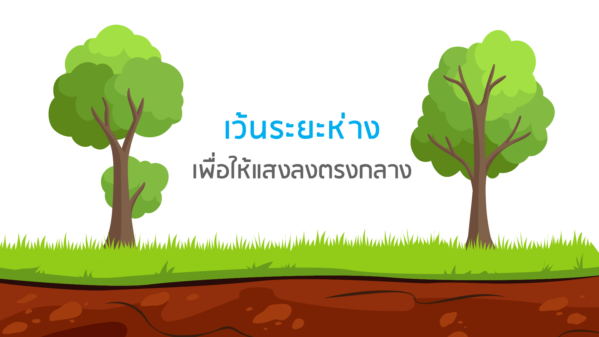 - วางผังปลูก ให้วางผังจากต้นไม้ใหญ่ไปเล็ก โดยวางผังไม้สูงด้วยการเว้นระยะห่างของทรงพุ่มระหว่างต้น หากต้องการปลูกไม้ระดับกลางแทรก ก็ต้องเว้นระยะห่างให้เพิ่มขึ้น จากนั้นจึงปลูกไม้ระยะต่ำกว่าแทรกในพื้นที่ตามลำดับ ทั้งไม้เตี้ย ไม้เรี่ยดิน และไม้หัวใต้ดิน หากเราวางผังการปลูกเช่นนี้ จะช่วยให้การบริหารจัดการพื้นที่ได้ง่ายขึ้นในอนาคต ซึ่งนอกจากจะเกิดประโยชน์ต่อผู้อยู่อาศัยที่ไม่ต้องเหนื่อยแล้ว ยังทำให้พืชเจริญเติบโตได้ดีเพราะได้รับแสงอย่างเหมาะสม